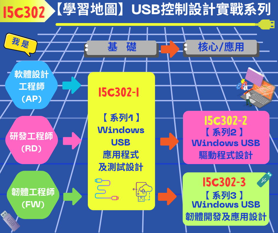 🚩USB全領域規畫、全選課程費用更優惠:👉15C302 USB控制設計實戰系列【全選】