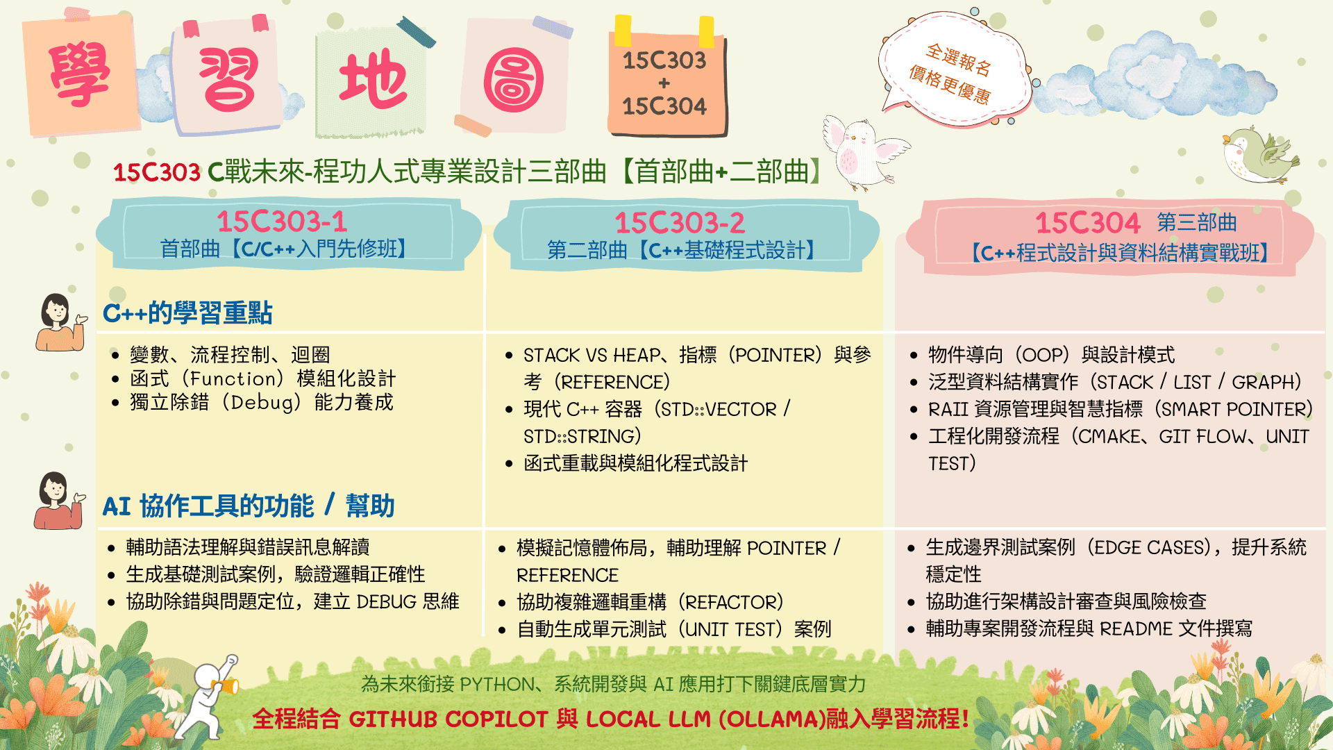 🉑➡ 15C304『C戰未來-程功人式專業設計第三部曲【C++程式設計與資料結構實戰班】(AI 協作工程版)』
