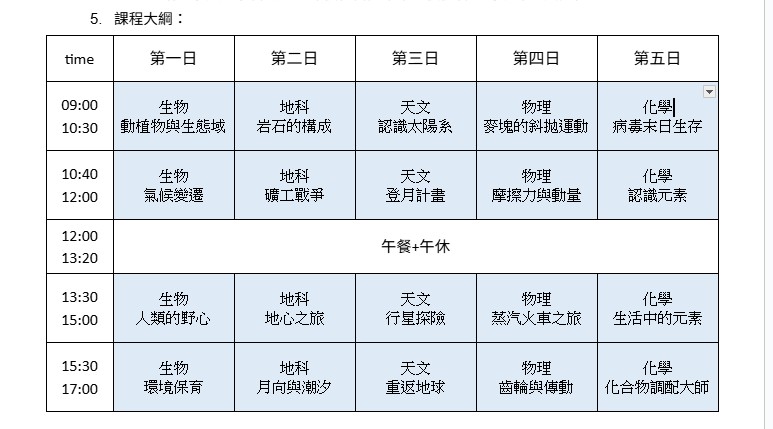 利用麥塊作為媒介,準備精美的遊戲地圖和故事背景,搭配多樣的模組輔助,分別引入生物、地科、天文、物理、化學等領域的知識,深入觀察生活中存在的各種自然現象,以激發學員們對自然科學的好奇,刺激他們未來主動去探索學習更多科學知識。