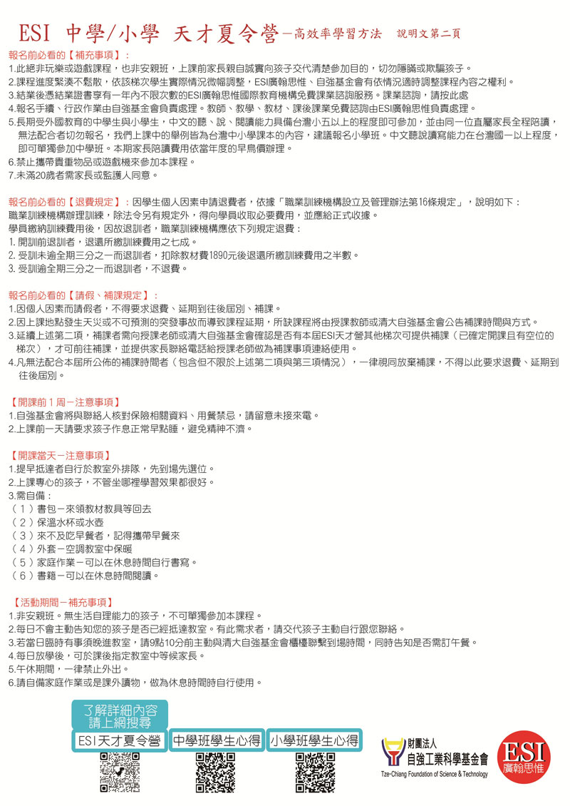 7.上課前一天請要求孩子作息正常早點睡,避免精神不濟。學生需自備書包來裝教材教具。