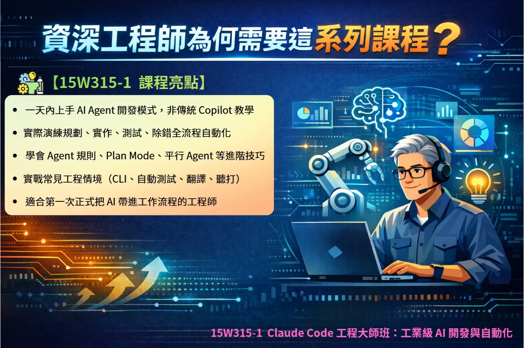 🉑➡ 15W315-3『Claude Code 工程大師班:工業級 AI 開發與自動化 』