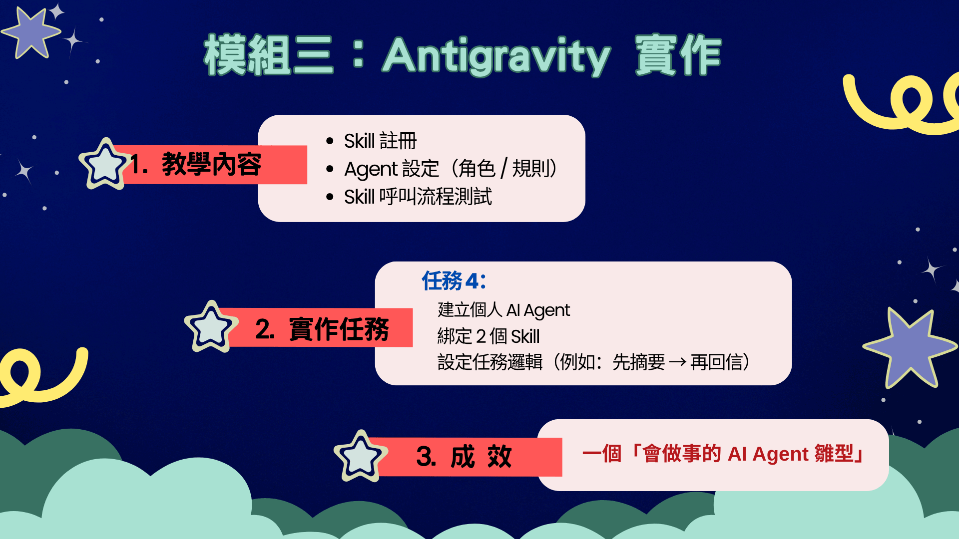 🕘 上午:Skill 開發與 Agent 建構(Antigravity)