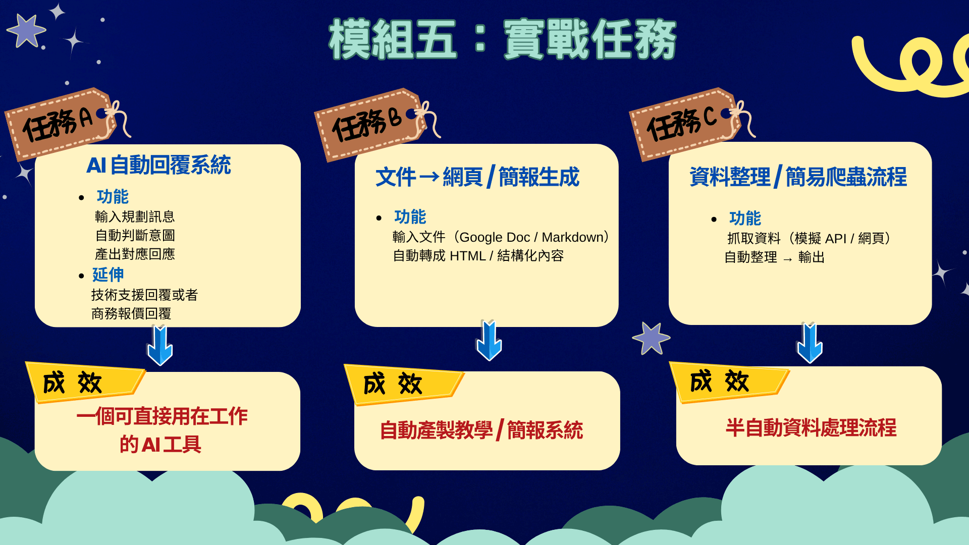 🚀 本課程以「做出能用的 AI 工具」為核心,帶領學員從 Skill 撰寫到實際部署執行,完成一套可落地的 AI Agent 工作流程。
