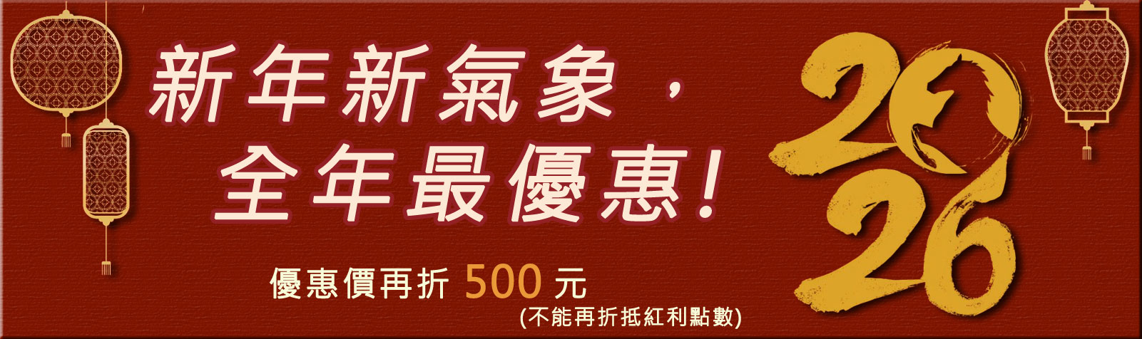 新年新氣象,全年最優惠,優惠價再折500元(不能再折抵紅利點數)